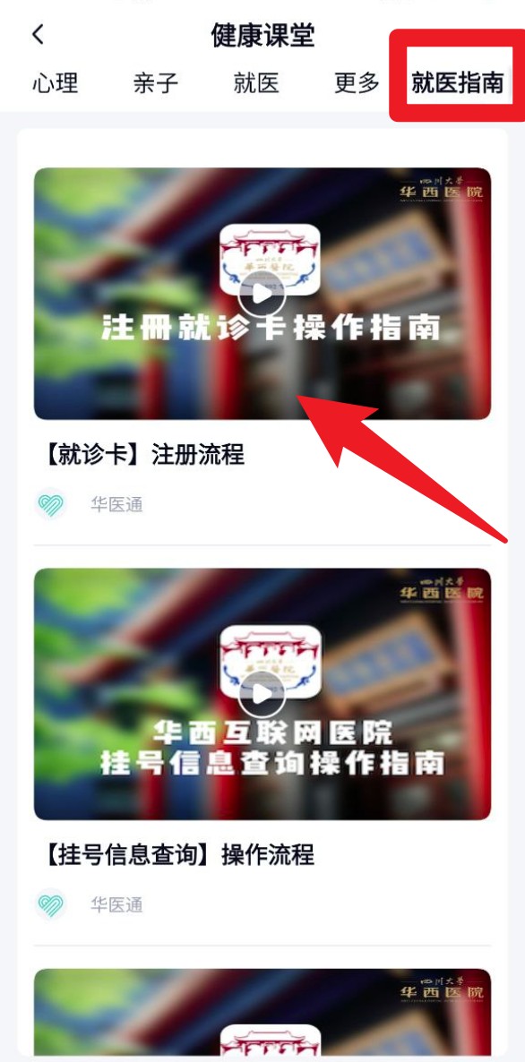 5. 切换至就医指南栏目,可查看操作指引视频,包括挂号信息查询流程等,适合初次使用者快速上手。