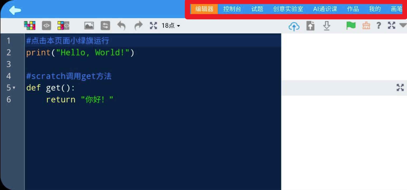 3. 返回主界面,点击左上角的AI图标,进入人工智能相关模块进行编程学习与互动训练。