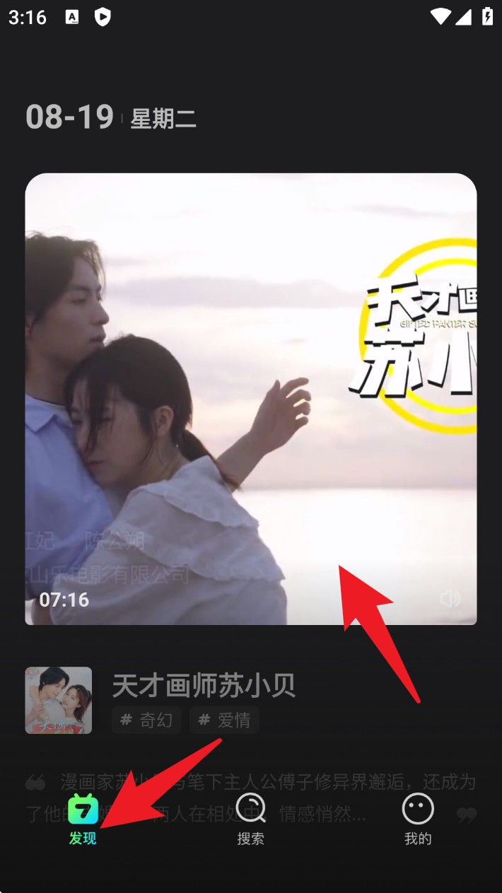 1. 进入首页默认停留在发现页面,可浏览最新短剧内容,点击封面直接进入观看。