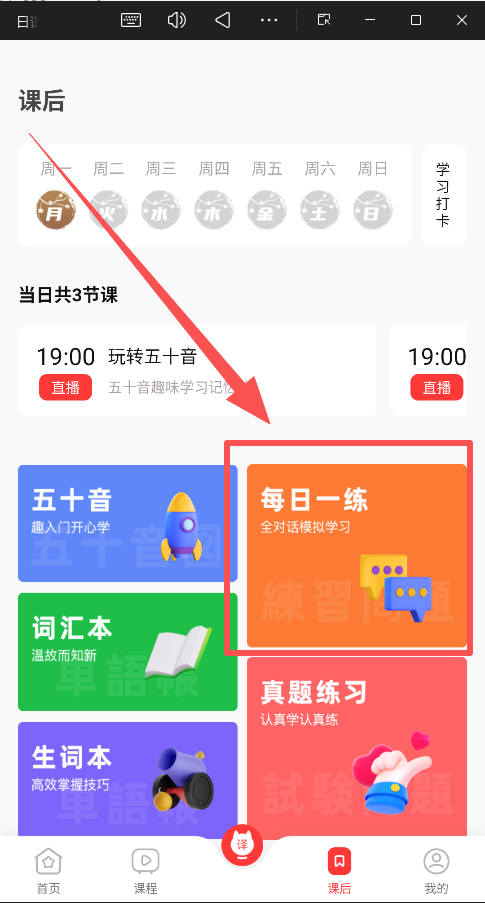 每天打开 课后 页面,完成 每日一练 和 背单词 任务。