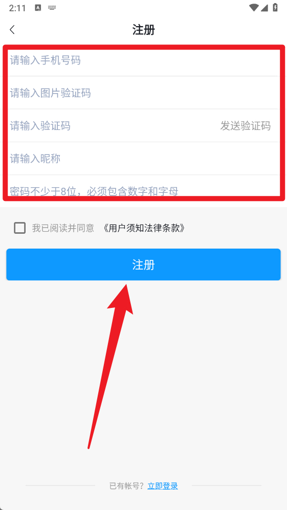 1、打开APP后,先完成注册步骤,输入手机号、验证码等信息,确认无误后点击注册按钮即可创建账户。