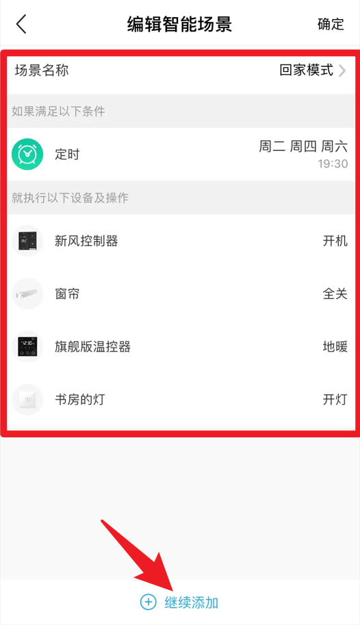 4、在编辑智能场景中可以自定义模式,例如回家模式等,选择执行时间并添加相关设备动作,满足不同生活需求。