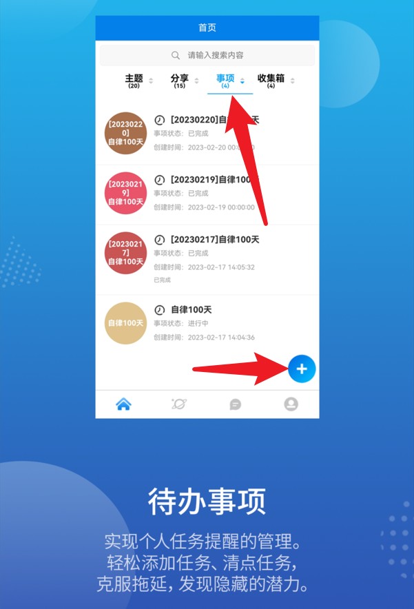 3、在事项页面可新增任务、标注完成进度,实现个人待办的清晰管理。