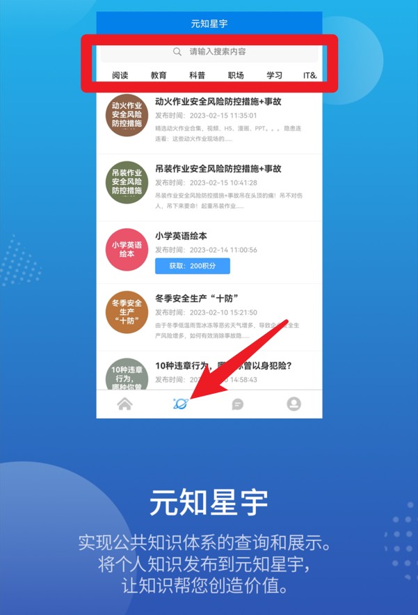 4、点击元知星宇可浏览各类知识内容,按领域分类查询,打造公共知识平台。
