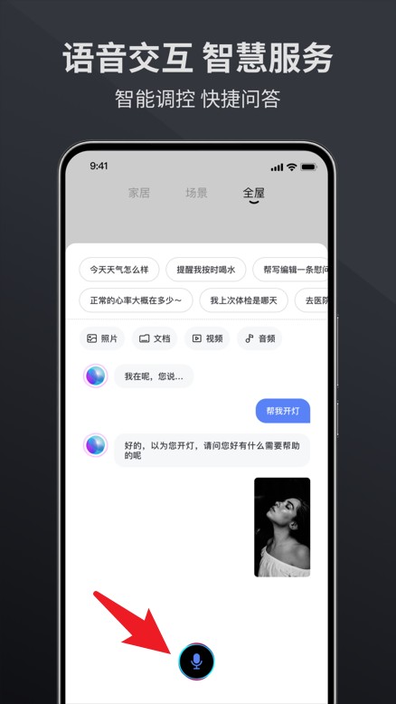 5、通过语音按钮可开启语音助手功能,支持语音控制家电、查询信息等便捷服务。