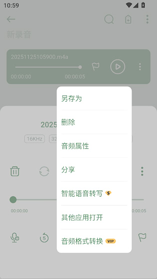 3、录音完成后可以导出音频,转换成其他格式