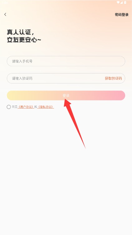 2、在登录页面输入手机号和验证码,勾选同意相关条款后点击登录进入应用。