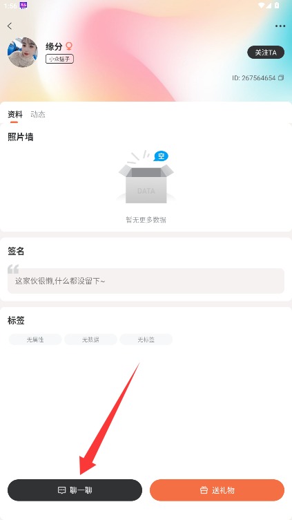 4、进入用户个人主页详情后,点击底部聊天按钮即可立即发起实时在线对话交流。