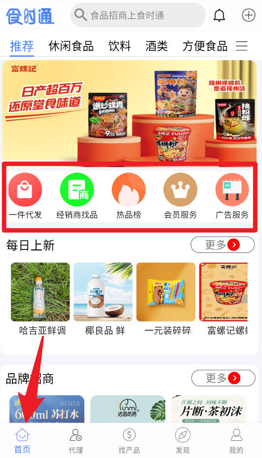 1、首页页面,用户可浏览每日上新商品、广告服务,提供便捷的商品代理与采购功能,适合快速了解市场动态。