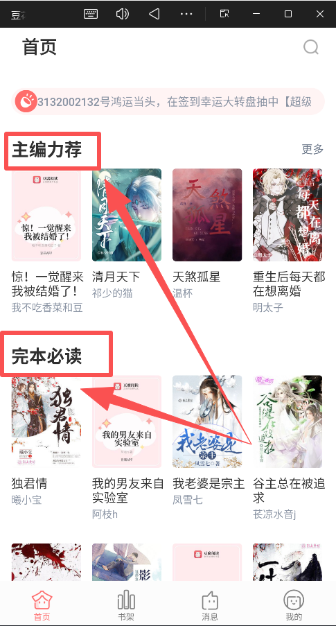 作为新用户,可以先在 首页 浏览“主编力荐”和“完本必读”。