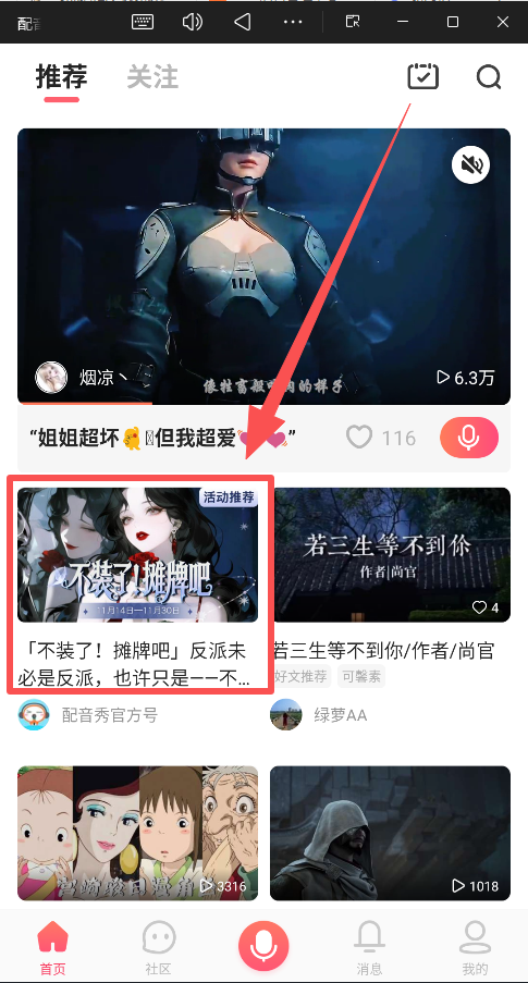 完成的作品,别忘了分享到社区中展示。这里有大量热爱声音的同好,他们会为你的创作送上真诚的喝彩与宝贵意见。这是一个专注于声音表达的互动空间,期待你的加入,共同交流与成长。