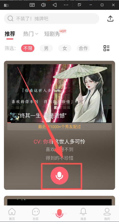 在 首页 找一个台词较少、你比较熟悉的短视频或剧本片段(比如一个热门梗或经典台词)。