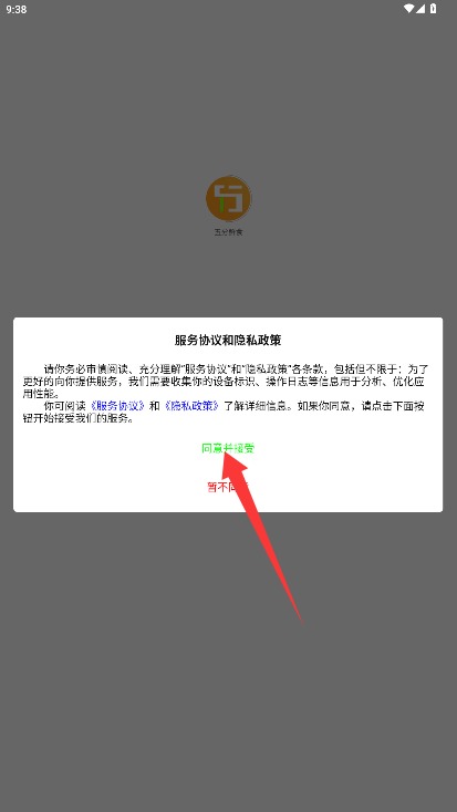 1、初次使用需阅读用户服务协议与隐私政策,确认后点击同意并接受选项进入应用。