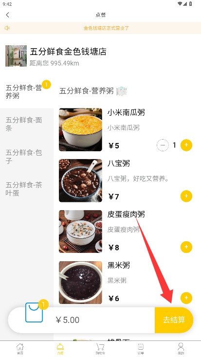 4、浏览菜单选择心仪菜品加入购物车,确认订单信息后点击去结算完成支付流程。