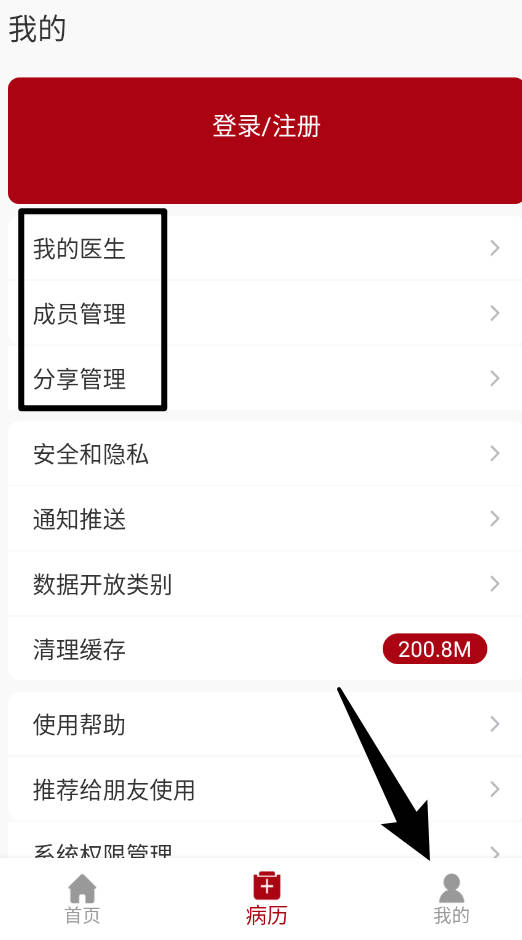 4、在我的界面中,可以查看我的医生、成员管理和分享管理等功能,方便进行个性化的账户管理及信息共享。