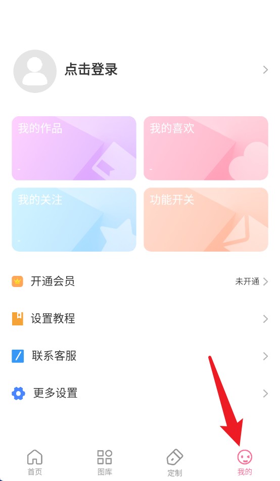 4、点击我的进入个人中心,可查看收藏、关注、作品等信息,也能进行会员开通和设置操作。