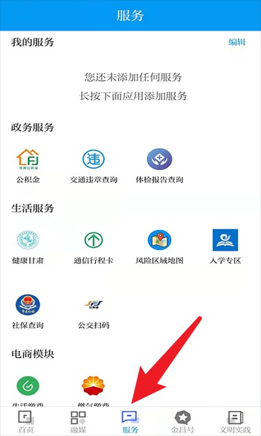 3、在服务栏目中可查看政务、生活、电商等各类服务功能,支持添加个性化常用服务入口。