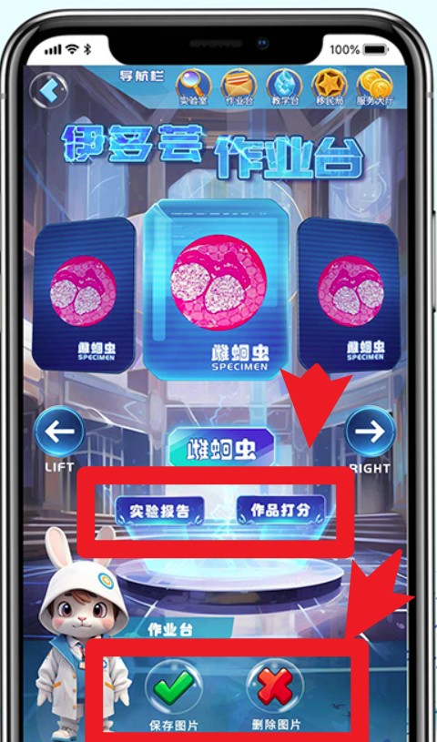 4.观察结束后点击右侧实验报告或作品打分,也可选择保存图片或删除图片进行作品管理。