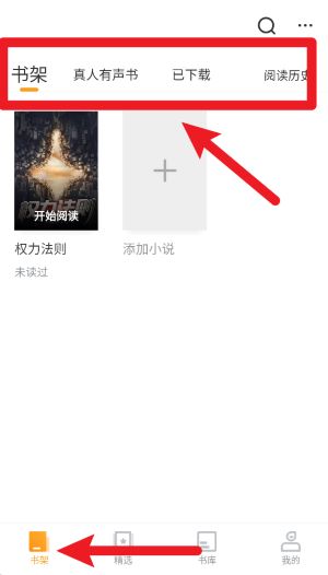 1、打开应用后点击底部书架图标,可快速查看已添加的小说和下载的离线书籍。