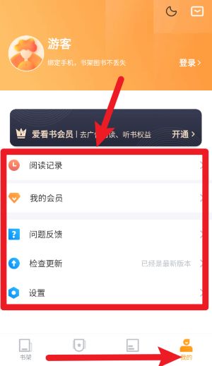 4、点击我的页面可以查看阅读记录、会员信息、反馈问题或进行软件设置与更新。