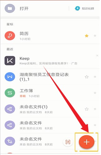 1、在本站下载安装 WPS 文档查看器,完成后打开软件并登录账号,进入首页后点击右下角 “+” 按钮。