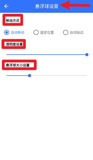 3、通过悬浮球设置界面可自定义移动方式、透明度及悬浮球的大小显示效果。