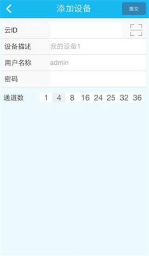 1、添加设备:点击右上角“+”号,选择云ID、IP/DDNS或局域网扫描,填写信息后提交即可完成添加,默认体验模式为4路。