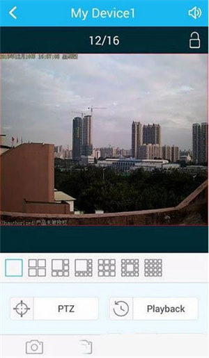 2、实时预览:点击已添加设备进入预览界面,默认显示4通道,支持最多16通道同时预览,可自由切换4/6/8/9/13/16画面布局。