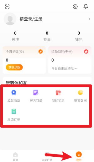 4、点击底部我的按钮进入个人中心,可查看步数记录、卡路里消耗以及个人奖品、订单、成就等详细信息。