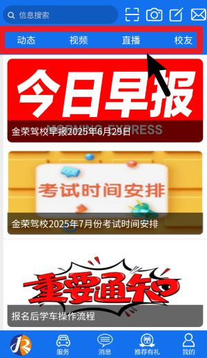 1、打开app,点击今日早报即可查看最新的驾校动态、考试安排以及重要通知等实时资讯内容。