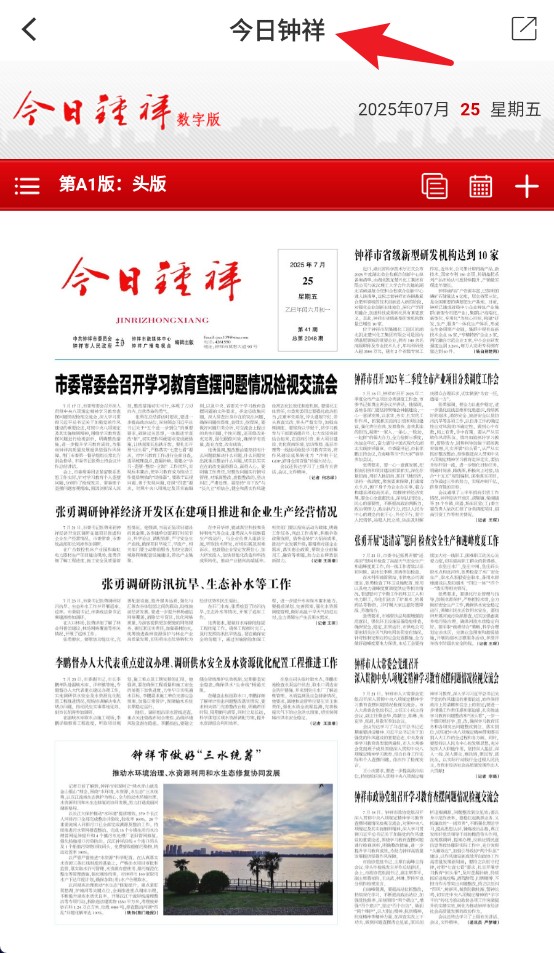 2、点击今日钟祥图标可查看电子报纸,浏览当日报纸头版内容及重点新闻信息。