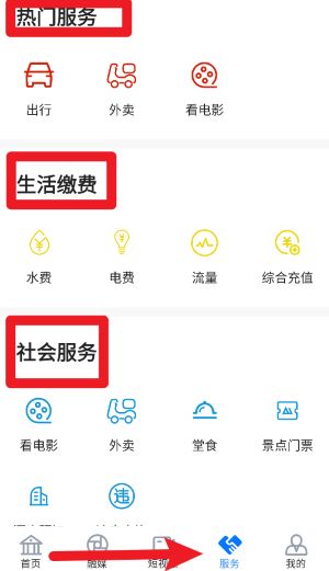 4、点击服务页面可使用出行、缴费、景点门票等热门服务,满足日常生活各类所需。