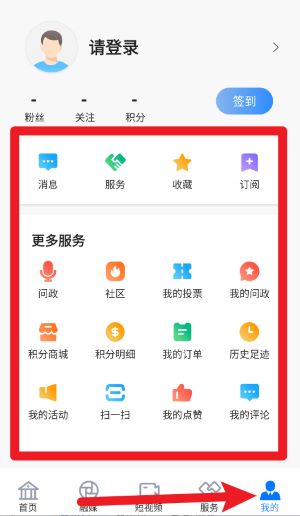 5、进入我的页面后可查看收藏、订单、消息等个人信息,并可访问更多便民服务入口。
