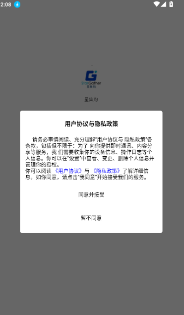 1、打开软件阅读“用户协议与隐私政策”,点击“同意并接受”,即可进入应用。