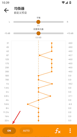 2、点击左下角按钮开启均衡器,然后自由拖动节点调整效果