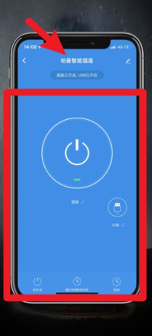 3、用户可通过智能插座控制界面实现电源开关的远程操控,并可同步管理USB电源状态。