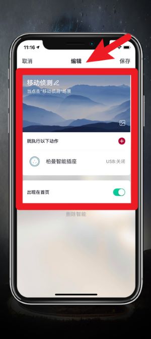 4、在自动化场景编辑中,用户可根据移动侦测设定执行指令,实现智能插座自动开启或关闭功能。