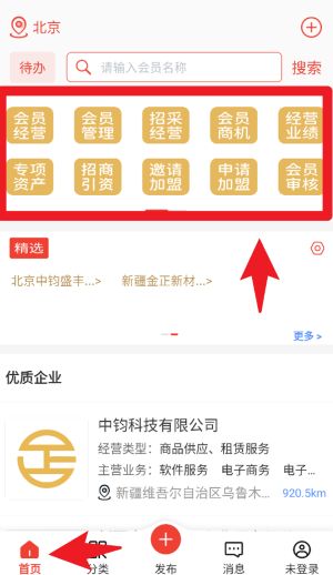 1、首页支持按地区筛选会员企业,同时提供多种分类标签如会员、加盟等,便于用户快速进入对应功能页面。