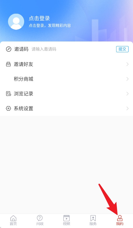 5、进入我的页面可登录账号,查看积分、浏览记录及系统相关设置内容。