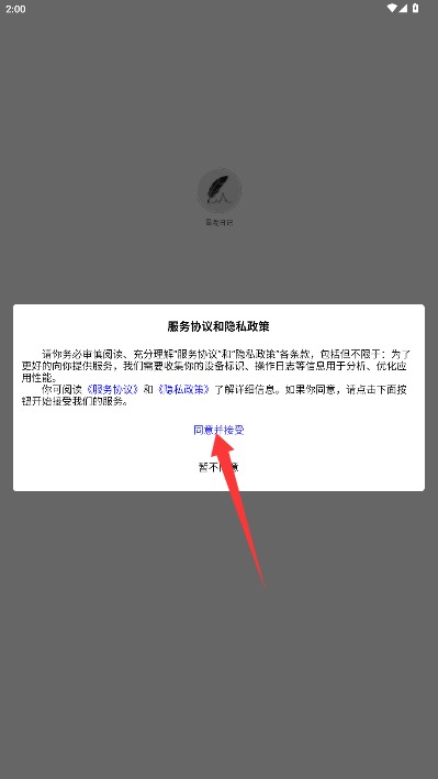1、初次使用需阅读平台服务条款与隐私政策,确认后点击同意并接受按钮进入应用。