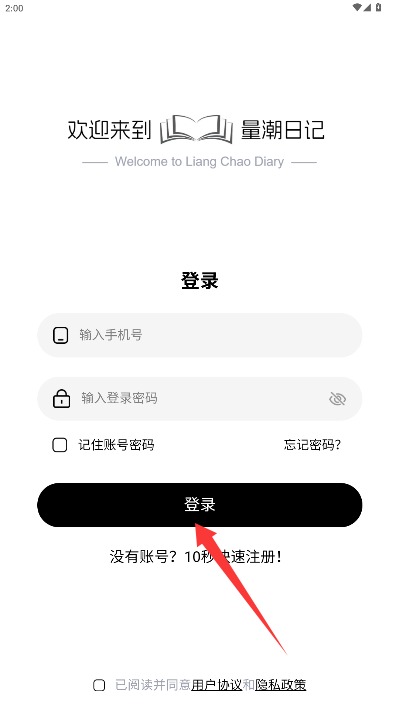 3、返回登录页面填写手机号与密码,勾选服务协议后点击登录进入个人中心。