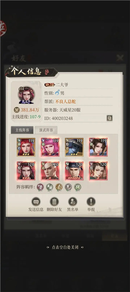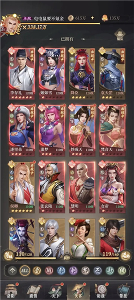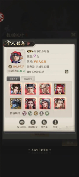 3、角色等级、角色进阶这些优先吧李存礼提升到不能在提升,再给其他人。千万不要平均升每个侠客,主打就是极限李存礼。