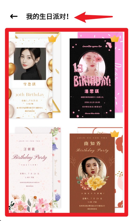 3、在生日派对模板界面中,挑选心仪样式后即可快速开始编辑制作。