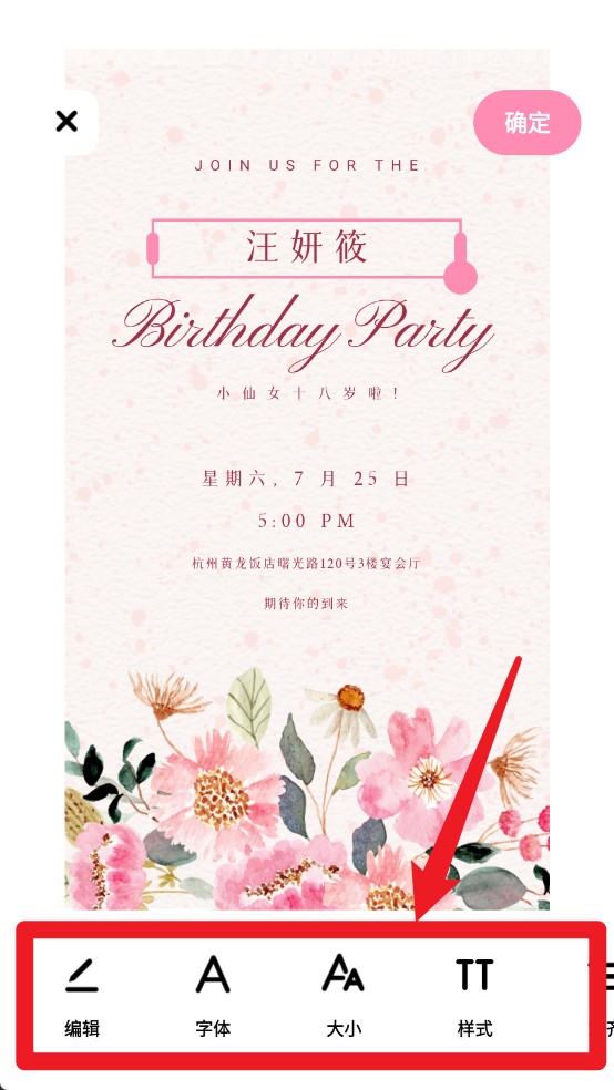4、编辑界面支持修改字体样式、字号及排版格式,打造个性化请柬。