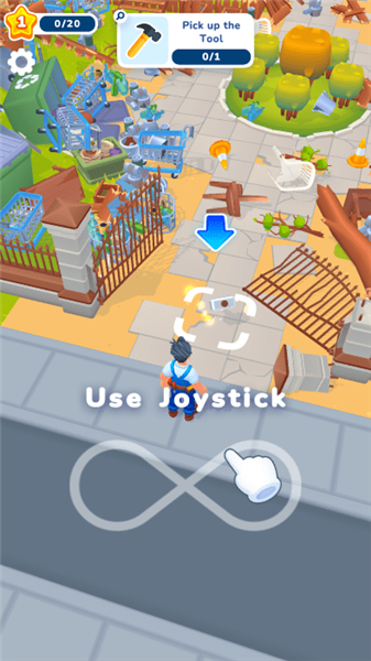 1、下载打开你的游戏,移动你的人物拾取地上的锤子。