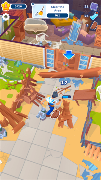 2、然后靠近地面上的垃圾,自动的清理获得道具。