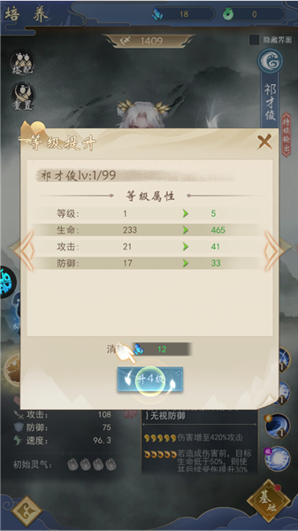 7、可以用获得的水晶给角色升级,提高角色属性。