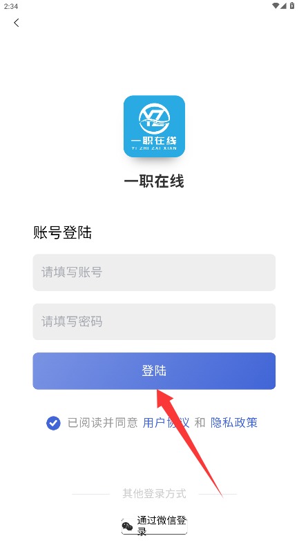 2、在登录界面输入账号和密码,勾选同意相关条款后点击登录按钮完成验证。