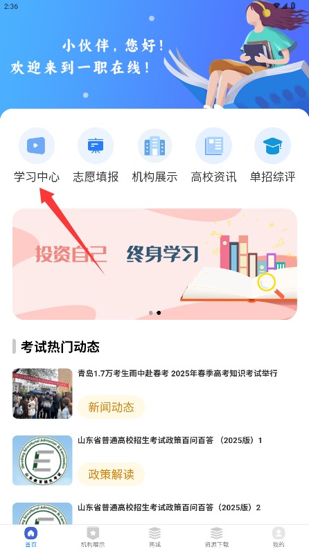 4、进入主页面后点击学习中心模块,即可开始浏览并学习相关专业知识与技能课程。