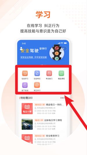 3、进入学习模块后可使用在线学习、考试练习与精品课程等功能,全面提升驾驶专业素养。